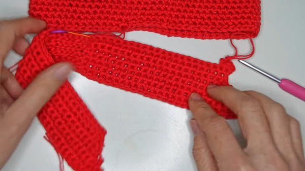 To keep your edges crisp and tidy on the bow pieces, especially the long tails, remember to actively weave the loose yarn tails from color changes or new rows into your current stitches. This technique minimizes the need to use a needle for tucking in ends later.