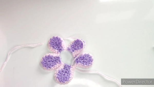 - Repeat the single crochet and slip stitch process for all five petals, connecting them together.
