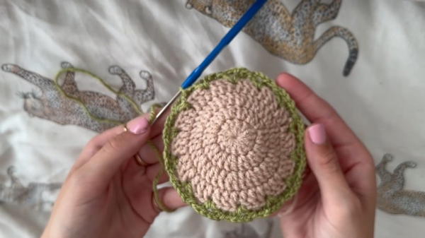 When working on the plant pot’s base, regularly check the size against the folded coasters to ensure it fits snugly. This prevents the pot from being too loose or tight.