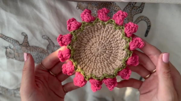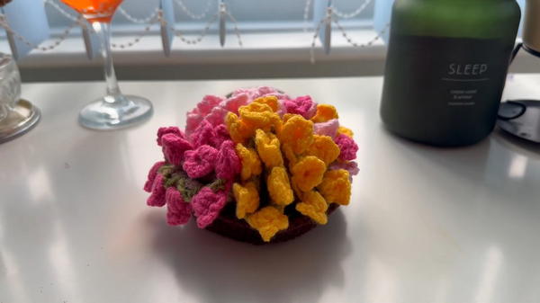 This tutorial teaches you how to create a beautiful coaster display that resembles a flower arrangement within a plant pot. The coasters are not just decorative but functional—you can pick one out and use it whenever needed. This is a wonderful project for crocheters looking to combine practicality with artistry. The video provides step-by-step instructions for crafting the coaster, leaves, petals, and the plant pot, with room for customization in color choices.