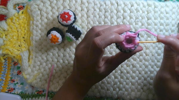 - Experiment with other yarn colors for unique sushi rolls (e.g., yellow for eggs or green for avocado).