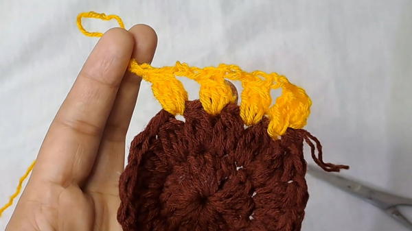 - Crochet 3 double crochets into the first puff stitch, followed by a chain-1.