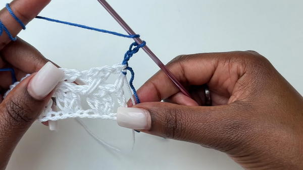 - Chain one, then go back to the previous stitch space and make another double crochet to form an "X."