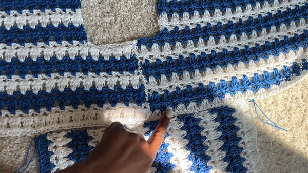 - Crochet sleeve panels separately using the same granny stitch and cross-stitch pattern.