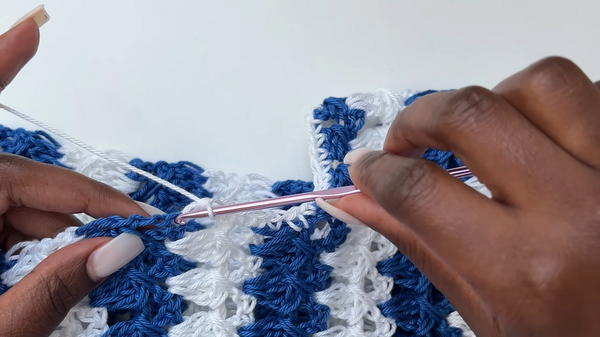 - Begin the granny stitch row: