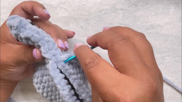 - Continue crocheting single rows until the base is complete.