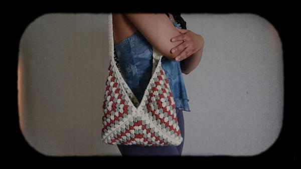 Once the squares are complete, they are skillfully joined together to form the body of the bag, followed by the addition of reinforced half double crochet straps for durability.