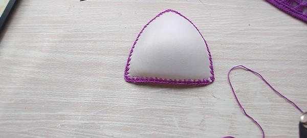 Pierce bra cup padding edges evenly about 0.5 cm apart using needle #0.9 to facilitate crochet attachment.
