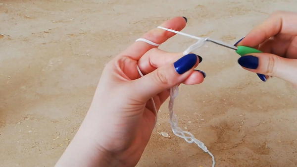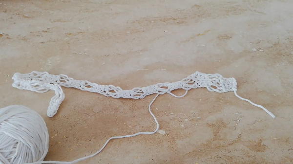 - Each group is made by chaining 4, yarn over and pull through, repeat as many groups as needed to create the width.