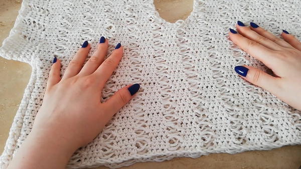 - Leave remaining edge open for short sleeves or crochet additional rows around the armholes for finished sleeves.