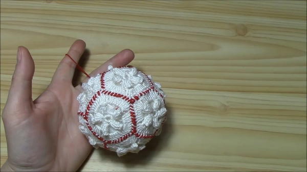 To complete the sphere, rounds of invisible decreases sculpt it into a seamless, captivating ornament. Finally, soft stuffing and a subtle finishing knot ensure a smooth, well-formed decoration.