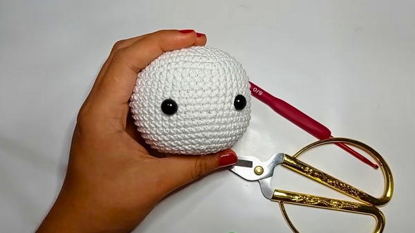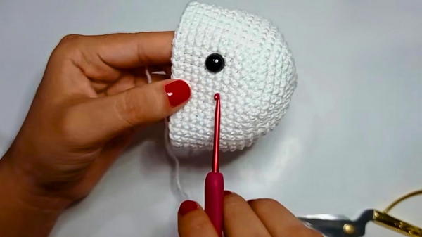 Safety eyes can be added with precision, placed between rounds 13 and 14, with evenly spaced alignment for a neat, polished look.