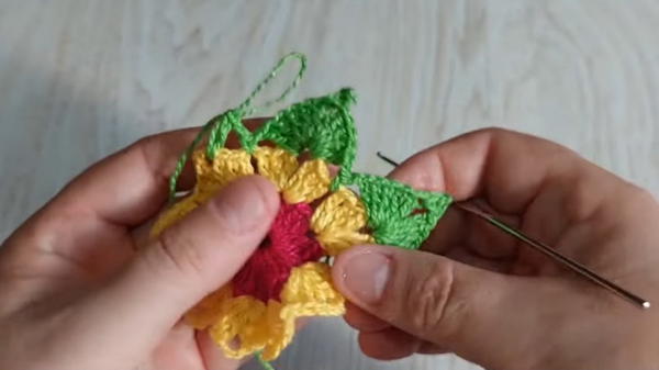 - Leftover crochet thread/yarn in three colors: pink, yellow, and green (or your choice)