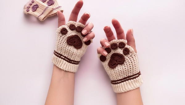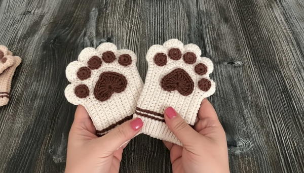 With this detailed step-by-step pattern, you can crochet adorable paw print gloves quickly and easily. Their charming design and comfortable fit make them a delightful project for yourself or as a special handmade gift.