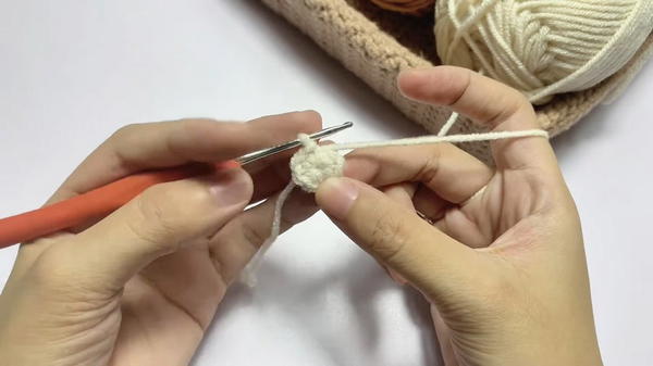 Work 1 inc (2 sc in one stitch), 1 sc around, total 12 sts.Round 4: