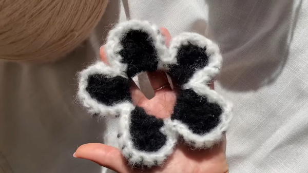 Layers of petals are added using double and triple crochets, which impart the characteristic shape and dimension.