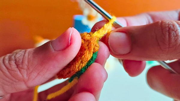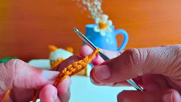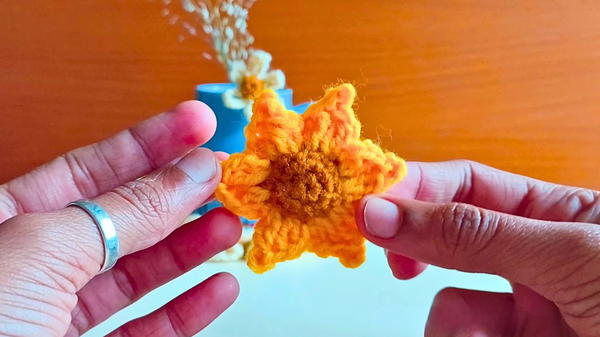 It starts with a magic circle, a classic technique that forms the sunflower’s sturdy base, followed by rounds of single crochets to produce neatly aligned stitches.