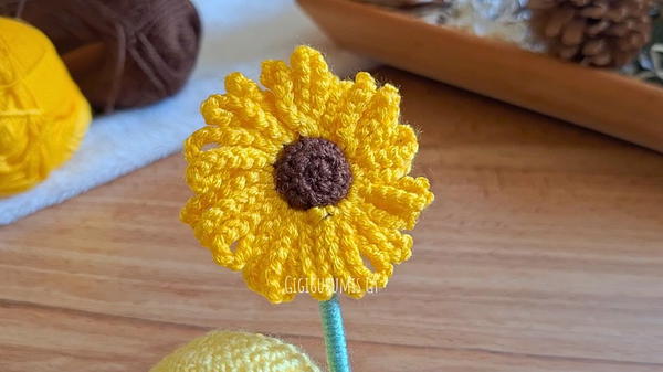 The beauty of this mini crochet sunflower isn’t just in its appearance but also in its simplicity. Requiring only two yarn colors, rich brown for the center and vibrant yellow for the petals—it is quick and easy to make.