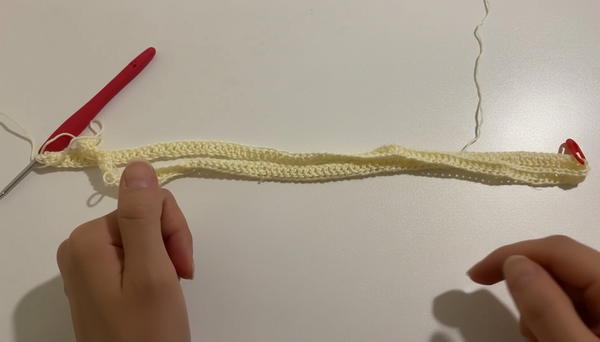 - Using the foundation double crochet (fdc), create the required number of foundation dc stitches to match your measured length (e.g., 171 fdc).