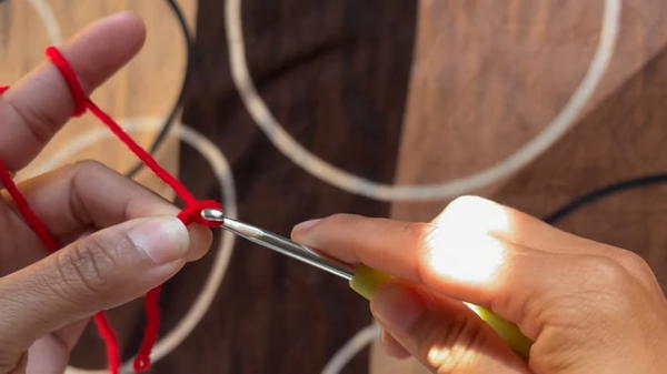 - Using the 4.5mm hook, start with a slip knot, then chain 8 stitches.