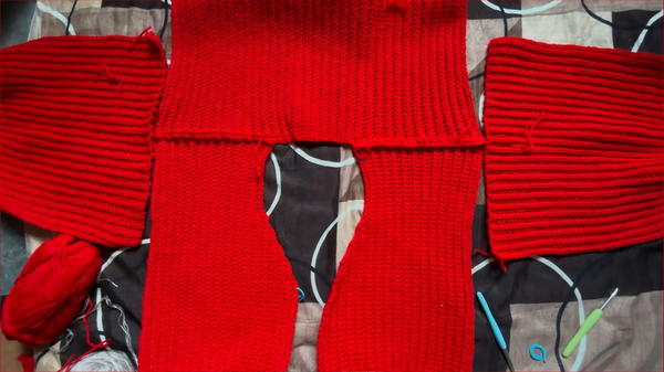 - With the wrong side facing, join panels at the shoulders using single crochet stitches across the marked section.
