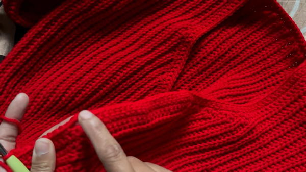 - Work 5 rows of single crochet for the ribbing. Make sure to add two single crochets in buttonholes to reinforce the structure.