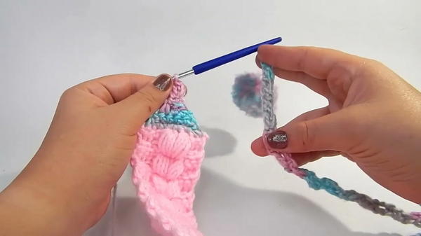 Braided Texture: The main body uses a technique involving single crochets worked in the back loop and a specific placement of Puff Stitches to create a woven, braided effect without actual braiding.