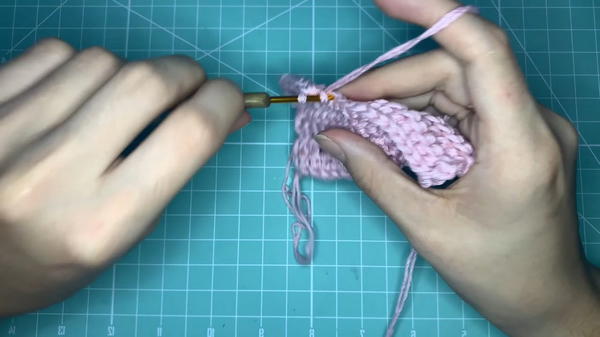 - To add elasticity and texture, crochet several rows of relief single crochet (rel sc) stitches: