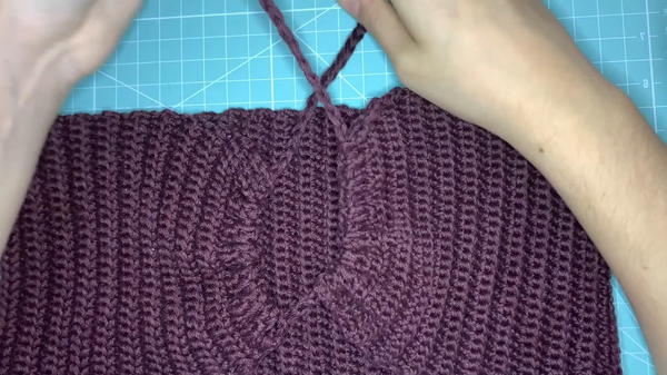 - Continue building rows until the piece covers the bust according to your size and preference (Bia recommended trying on and adjusting length accordingly).