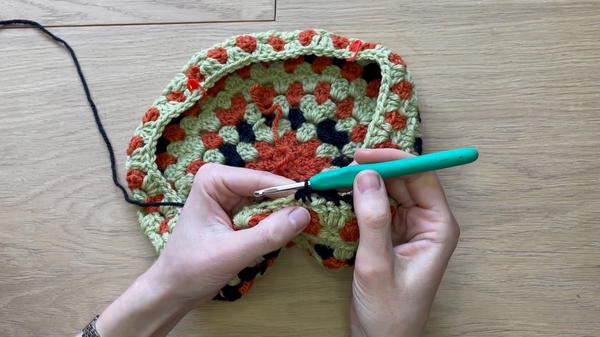 - For the 4th Round, work alternate spaces with two granny clusters separated by a chain (these are the “increases”).