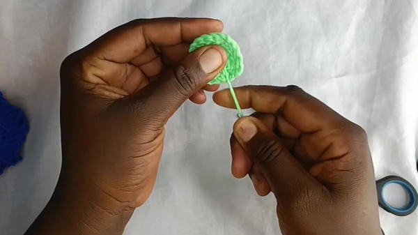 At the end of the 5th round, chain 1, cut the yarn, and weave in the tail.