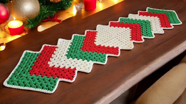 This tutorial guides you through creating a beautiful and modular Christmas Table Runner using the classic granny square technique. The project begins with a large central square and is then extended outward in alternating color blocks to form a long, rectangular shape. This piece is a festive and customizable addition to your holiday decor.