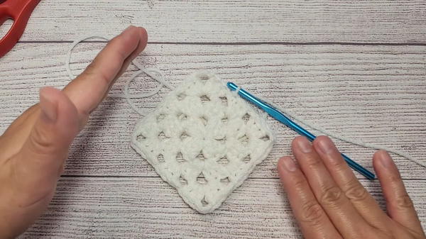Round 3 and Beyond: Slip Stitch to the corner. Work the Corner sequence [3 Dc, Ch 3, 3 Dc] in the corner space. Ch 1. Work a Granny Cluster (3 Dc) in every Ch-1 space along the side. Ch 1. Work the next Corner sequence. Continue this pattern. With each round, you will add one more Granny Cluster on each side.