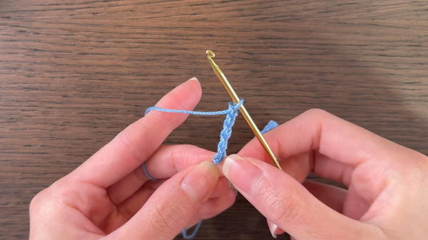 - Chain a length long enough to tie around the desired area, secure it with one extra chain, cut, and pull the yarn through.
