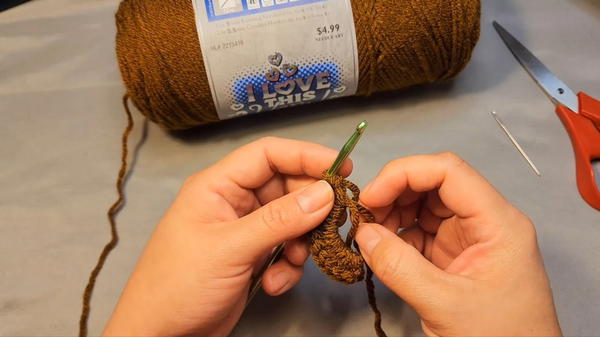 Main Hat: Brown yarn.