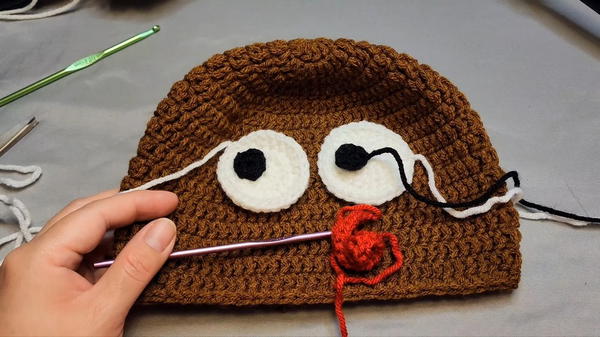 Hook Size: 4.5 mm (for the hat body) and 4.0 mm (for the eyes and small details).