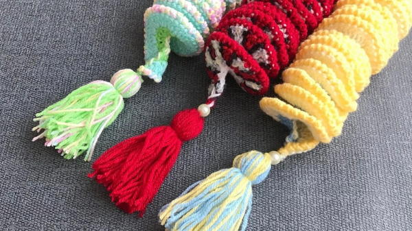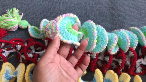 - Arrange the spinner into its shape by manipulating the coils. Optional: Attach pom-poms or beads at the edge for extra flair.