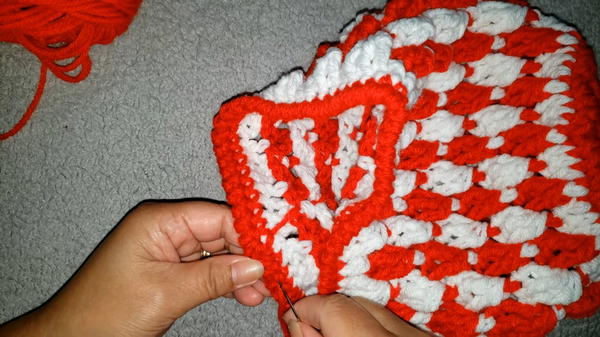 - Use bright, contrasting yarn colors (like red and white) for the Christmas theme.