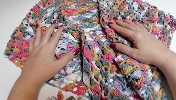 - Light blocking or steaming can help your scarf lie smooth and show the textured fan stitch clearly.