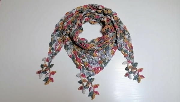 - Attach these twig leaves along scarf edge by slip stitching into the base fabric at regular intervals, forming a pretty leafy border.