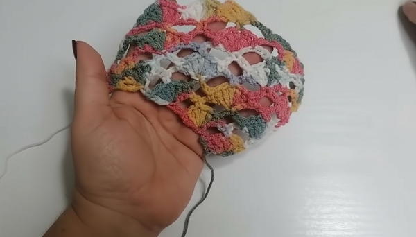 - This pattern of fans separated by chain loops and single crochets continues repeating.