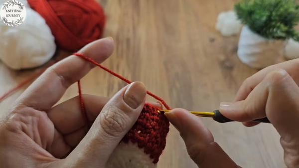 One-Piece Construction (mostly): The head and body are often worked continuously, with the hat and beard added separately.