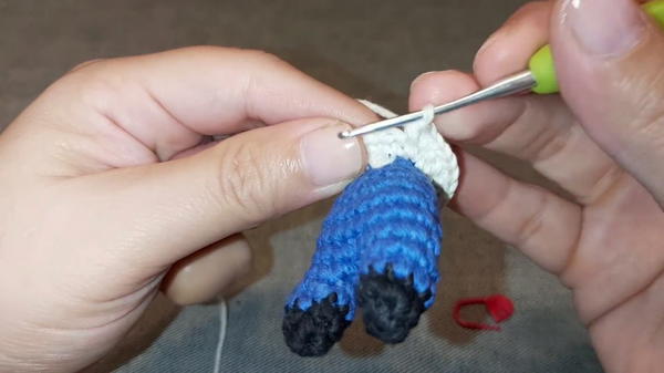 The process of making this piece includes working in rounds with single crochet stitches to shape the body, arms, and legs, all while using strategic color changes to reflect his signature outfit.