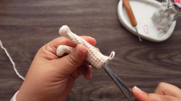 Use two different hook sizes: 1.75 mm for the small body parts (arms, legs, head) to ensure tight tension, and 2.25 mm for the larger pieces (dress and sleeves) to provide volume.