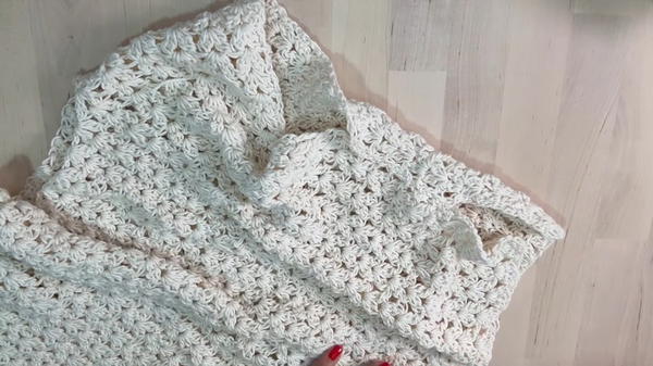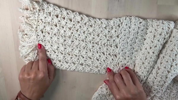 - Using same yarn and hook, create sleeves by working 7 fan clusters per sleeve side.