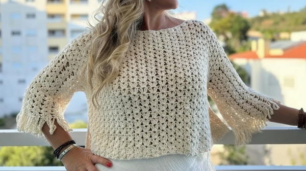 This loose crochet blouse is a beautiful, wearable project featuring a classic fan stitch pattern and versatile design elements like neckline shaping and optional fringe sleeves. Easy to adjust size and style, it’s an enjoyable make for intermediate crocheters ready to add a unique handmade garment to their wardrobe.