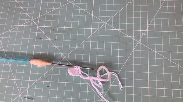 - Make a total of 5 dc stitches in white yarn, starting from 5th chain from hook, one stitch per chain.