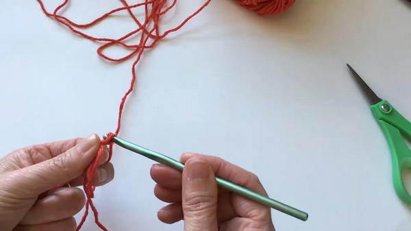 - Attach the chain loop back to the starting point with a single crochet stitch, then fasten off.