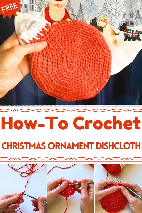 Spark holiday joy with this Free Crochet Christmas Ornament Dishcloth Pattern, forming the base, adding festive details, and finishing with charm.