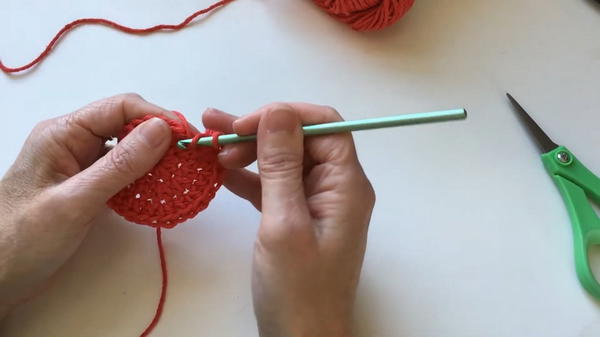 - Cinch the ring closed tightly and join the round using a slip stitch.